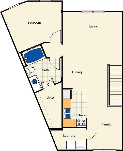 - Fitness Center: Above a Fitness Center, Nail Salon, & Restaurants