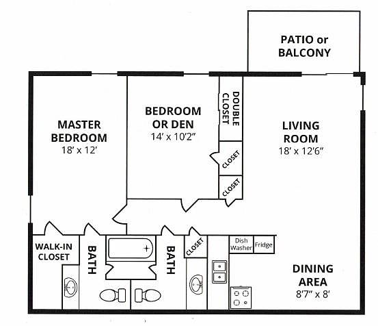 Dining areaAmple closet spaceStylish and comfortable layoutFrench style doorsPrivate balconySpacious bedroomsAccessible from both bedrooms
