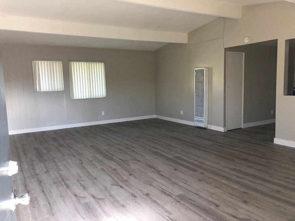 These recently updated 1-bedroom, 1-bathroom apartments offer an open and airy floor plan with modern finishes throughout. The living areas feature beautiful wood-style flooring that adds a touch of elegance while being easy to maintain. The kitchen boasts sleek white cabinetry, granite countertops, and a black appliance package, including a gas stove, ideal for preparing home-cooked meals. The spacious bathroom is designed with white marble-style tile, offering a clean and fresh look. Each unit maximizes space and natural light, creating an inviting and comfortable living environment. The open floor plan allows for versatile furnishing options, making it an excellent space for those who appreciate both functionality and style.
