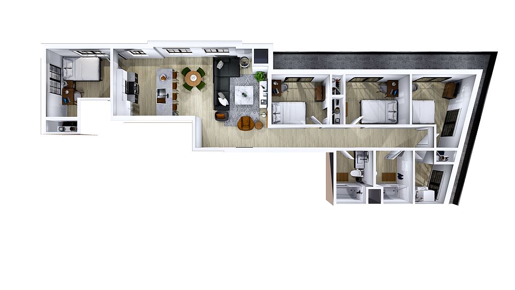 Each apartment features high ceilings, large windows, and a spacious, light-filled layout. Interiors include stainless steel appliances, quartz countertops, and contemporary finishes. Residents also enjoy secure underground parking and controlled building access. With its convenient location and modern amenities, The Point on Main offers comfortable, high-quality living in the heart of Ann Arbor.