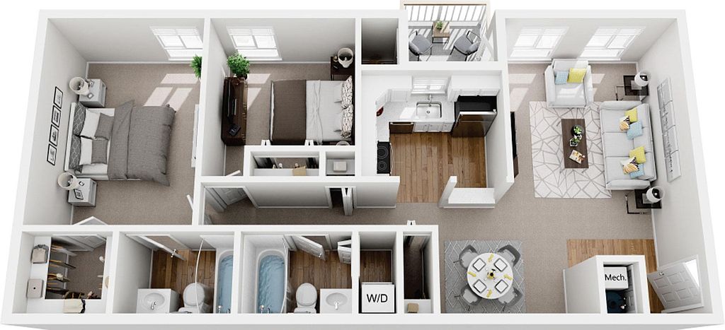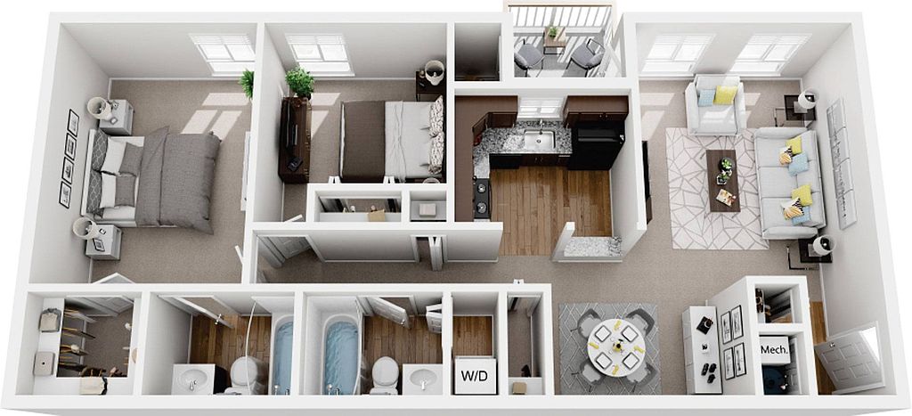 In-home washers and dryersCustom-style cabinetryPrivate storageUpdated flooringLarge closetsModern kitchens
