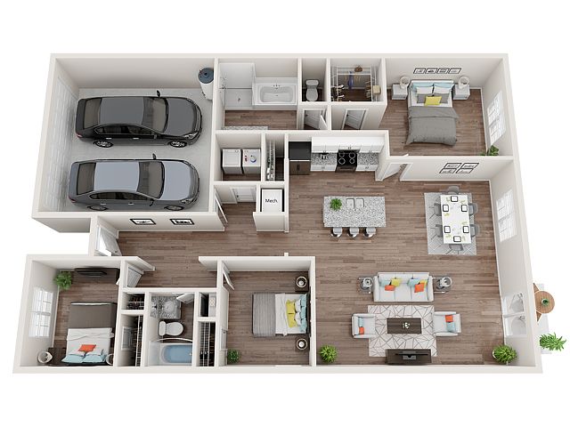 - Hardwood: Luxury hardwood inspired plank flooring throughout