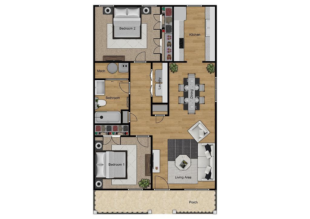 Private porchesBeautiful landscapingFully-equipped kitchens