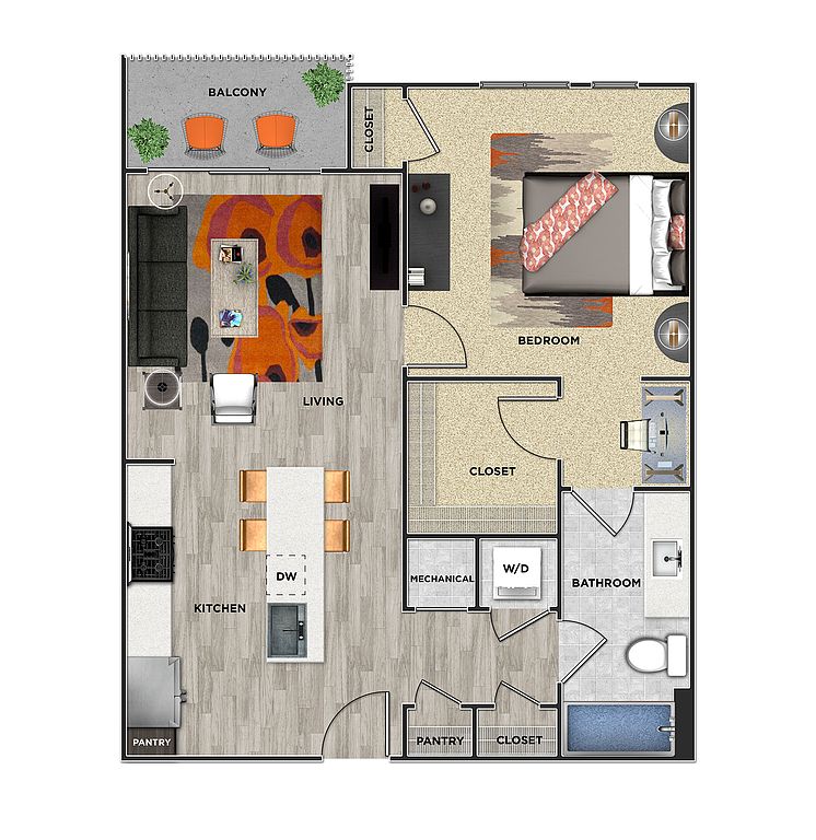 Price shown is Base Rent. Residents are required to pay: At Application: Admin Fee ($250.00/unit); Application Fee ($99.00/applicant, nonrefundable); At Move-in: Security Deposit (Refundable) ($500.00/unit); Parking-Garage ($100.00/vehicle); Utility-New Account Fee ($20.00/unit); At Move-out: Utility-Final Bill Fee ($15.00/unit); Monthly: Electric-3rd Party (usage-based); Trash-Doorstep ($30.00/unit); Water/Sewer (usage-based); Pest Control ($5.00/unit); Utility-Billing Admin Fee ($5.15/unit); Gas ($20.00/unit); Community Amenity Fee ($30.00/unit); Renters Liability Insurance-3rd Party (varies). Please visit the property website for a full list of all optional and situational fees. Floor plans are artist's rendering. All dimensions are approximate. Actual product and specifications may vary in dimension or detail. Not all features are available in every rental home. Please see a representative for details.
