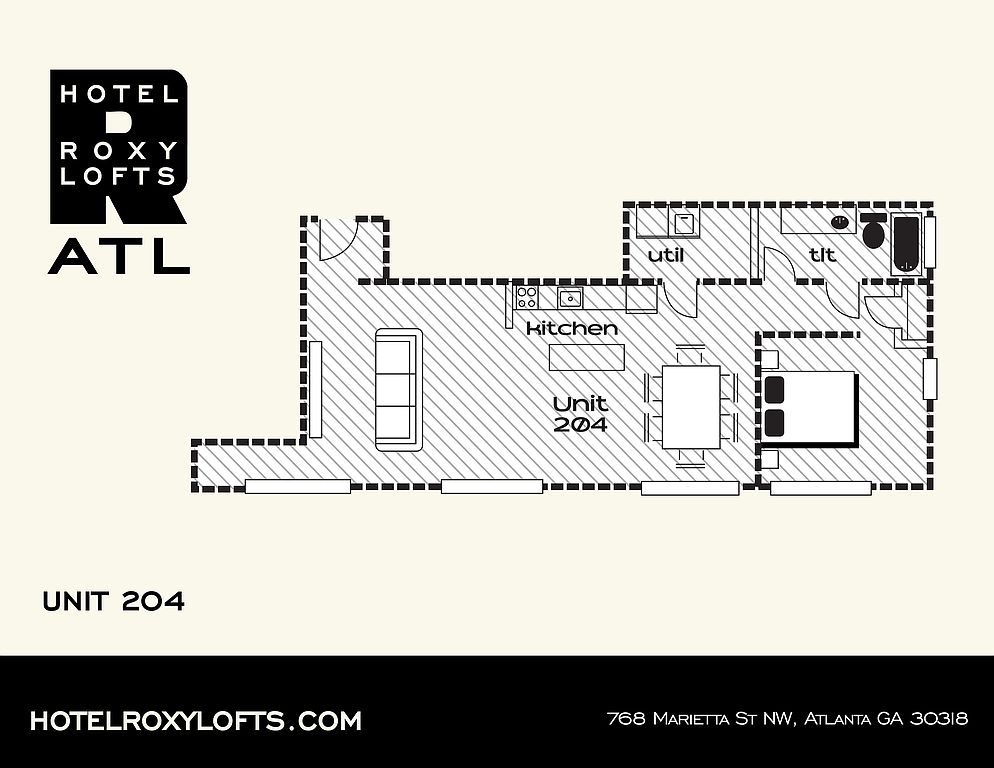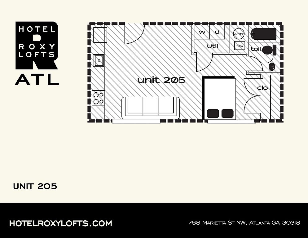 Hotel Roxy Lofts is in the Marietta Street Artery neighborhood in Atlanta, GA.