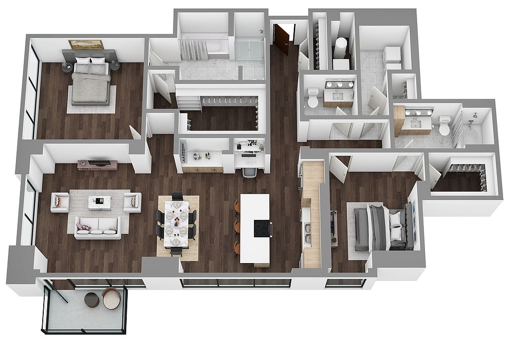 - One, Two And Three-bedroom Light-filled Living Plans That Are Aligned With Your Lifestyle, Offering Floor-to-ceiling Windows And Sleek Modern Finishes