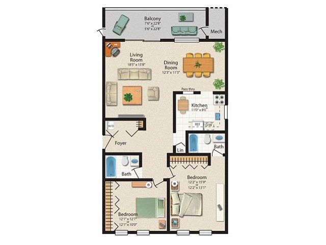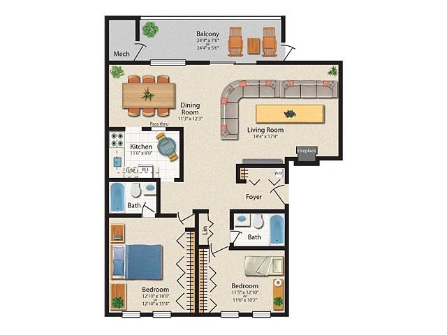 - Fireplace: Fireplace Available in some Two Bedroom Apartments