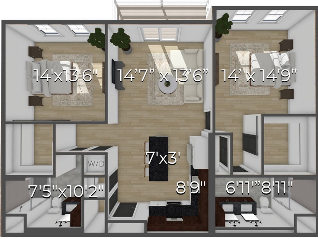 - Two Bedroom Closets