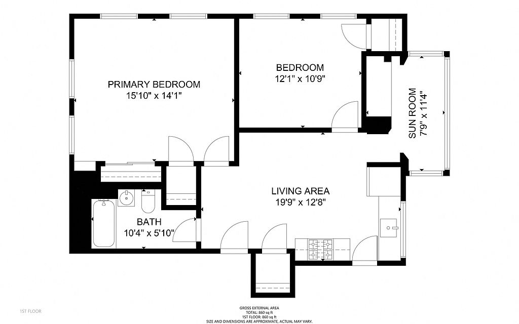 Small sun roomIndividual closetsSeparate kitchenTwo large bedrooms