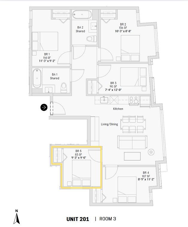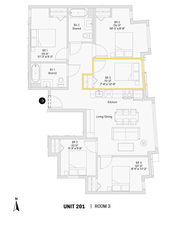 Our private studio suites are fully furnished bedrooms within a shared community apartment. These community apartments range from 2 to 5 bedrooms, each sharing 2 to 3 bathrooms. The shared spaces include a brand-new full-size kitchen equipped with an electric range, large refrigerator, dishwasher, and microwave. All common areas are fully furnished, featuring everything from couches and tables to silverware and houseplants.