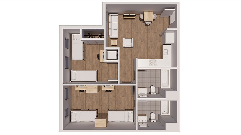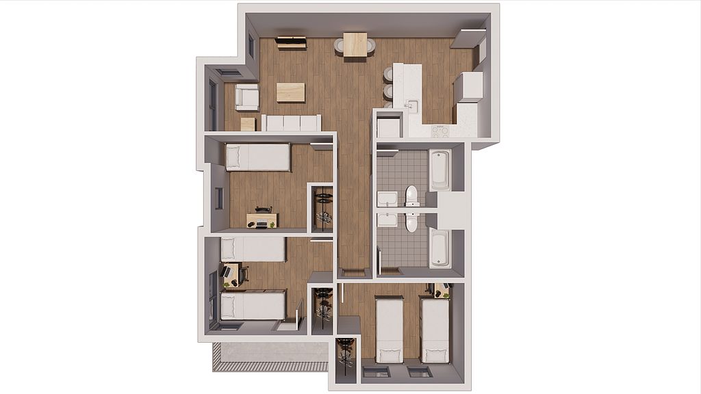 Private or shared rooms in spacious studio or 1-3 bedroom units
