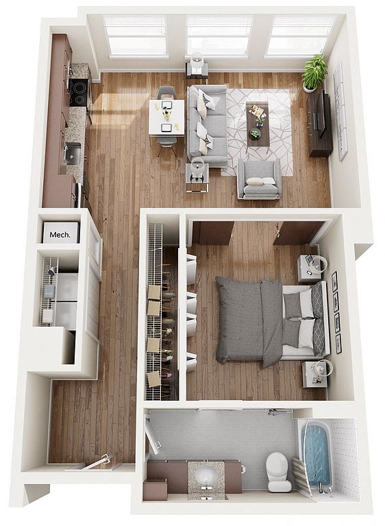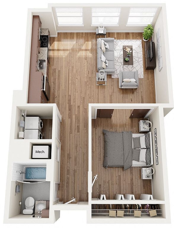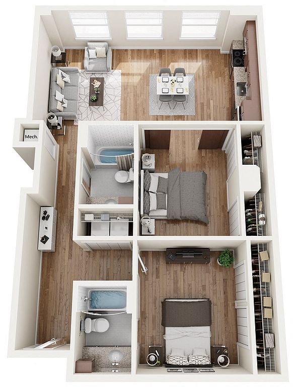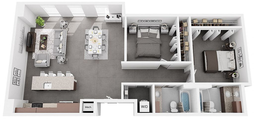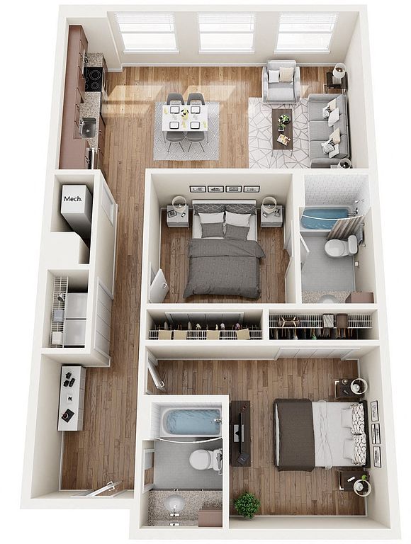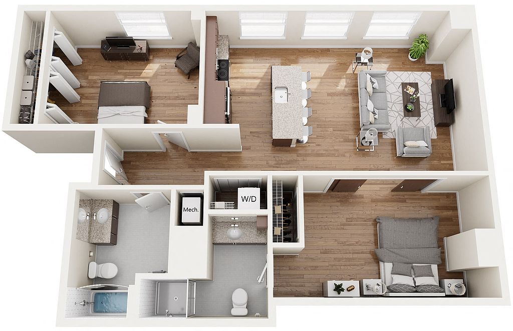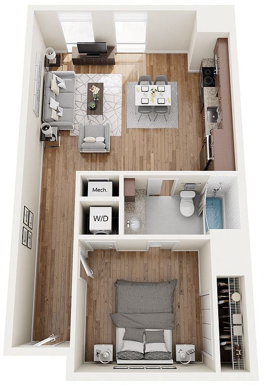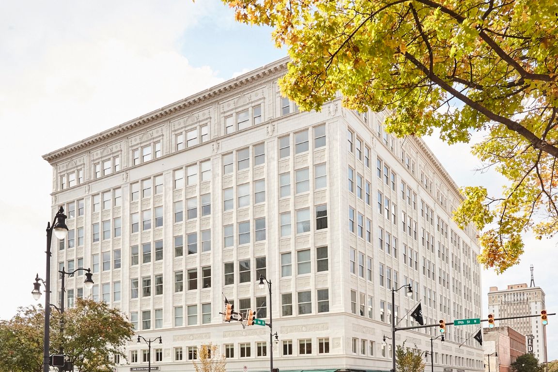 Contemporary apartment homes with spacious one and two bedroom floorplans located in downtown Birmingham. The Pizitz features a rooftop pool, a food hall, and friendly staff.