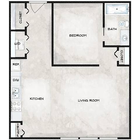 Studio 1 ba476 sqft