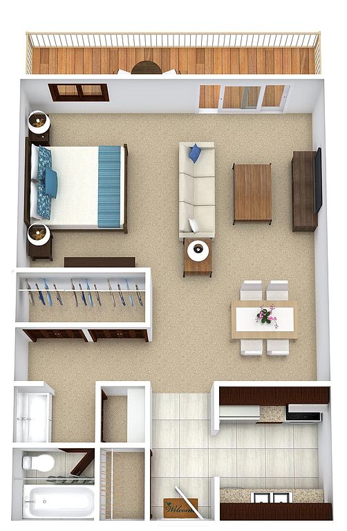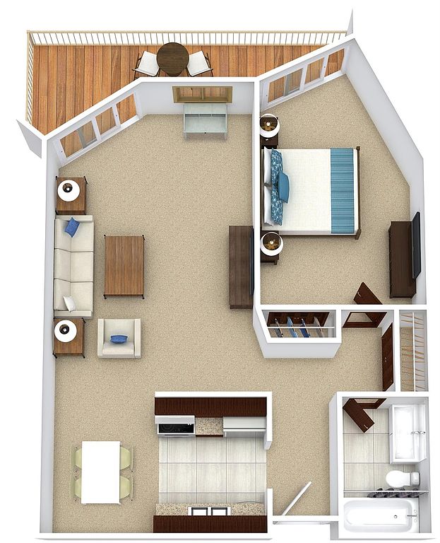 One- or two-bedroom townhomesIndoor pool and saunaFitness center