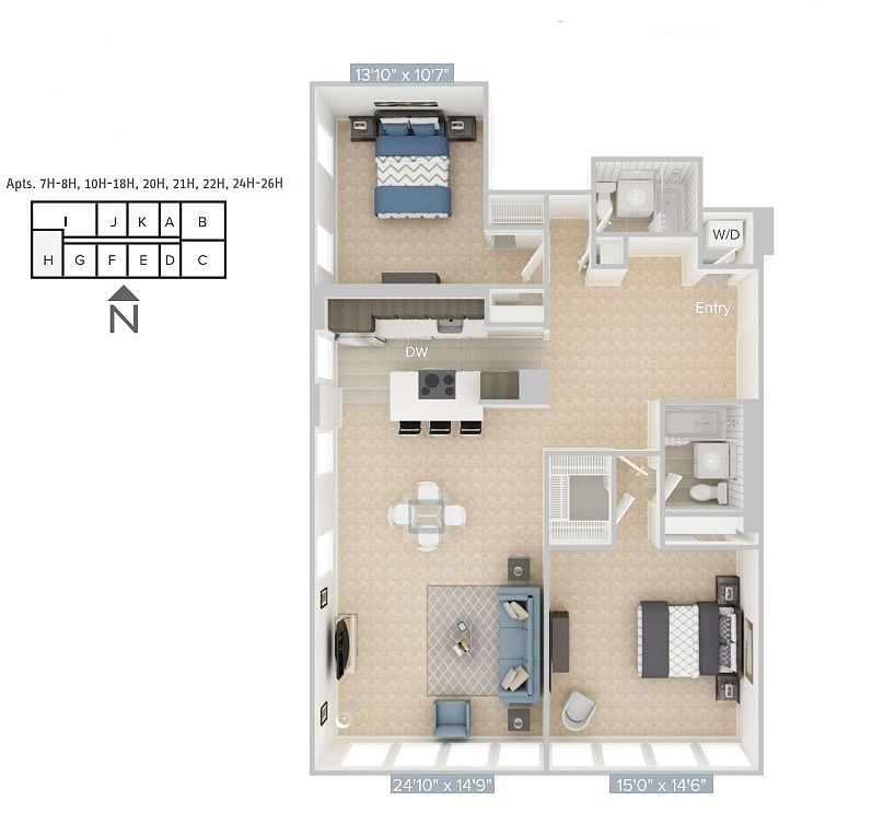 Unit , sortable column | Sqft, sortable column | Available, sortable column | Total price, sorted ascending |