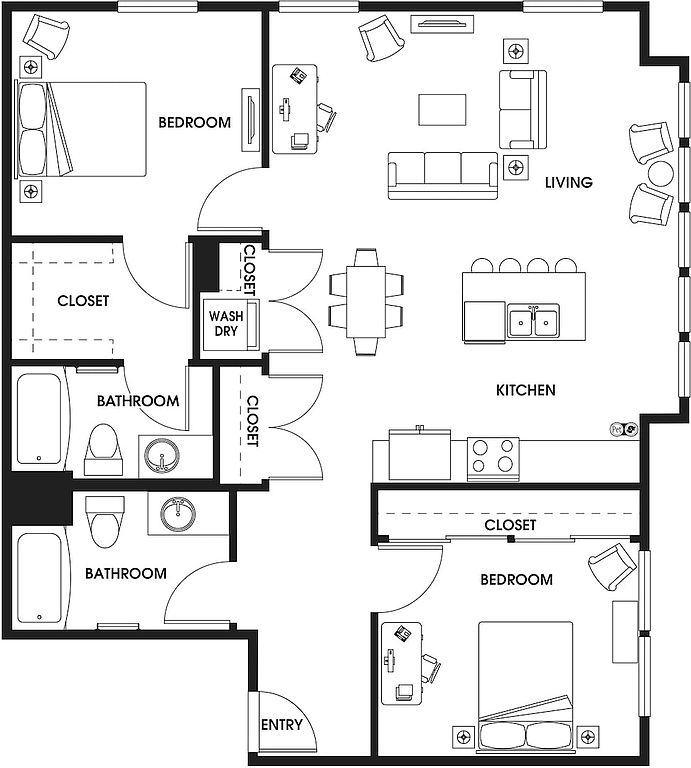 At the Pop, residents will enjoy keyless entry upon arrival home with special home features like a fully equipped kitchen complete with stainless steel appliances, walk-in closets, oversized windows, tech areas, patios & balconies, and in-home full-size washer and dryer.