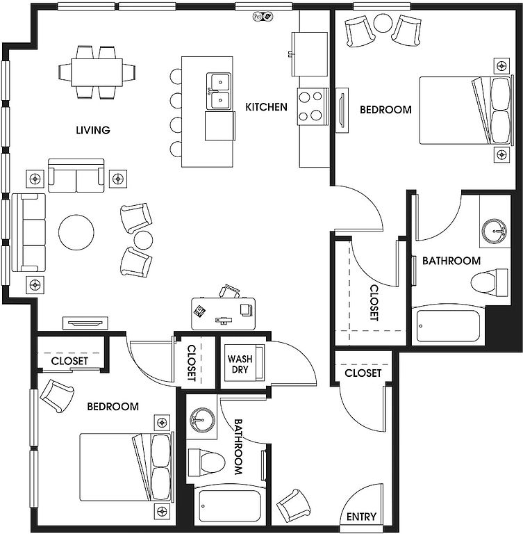 Fully equipped kitchenOversized windowsPatios and balconiesWalk-in closetsTech areasKeyless entryStainless steel appliances