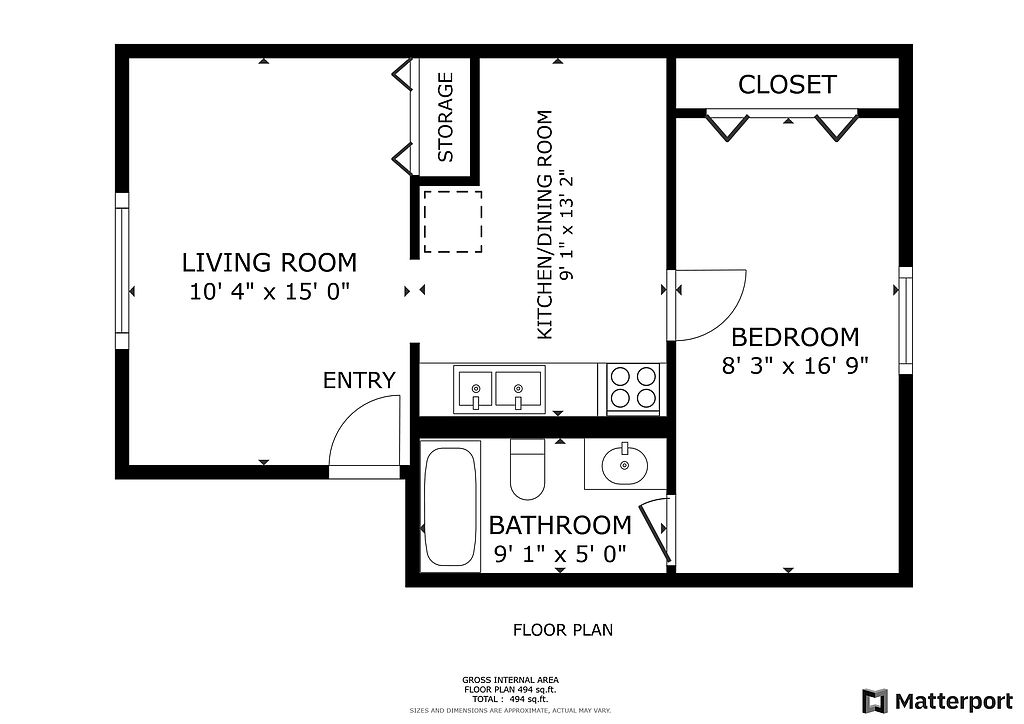 Air conditioningHuge closetLarge bedroomCozy kitchen