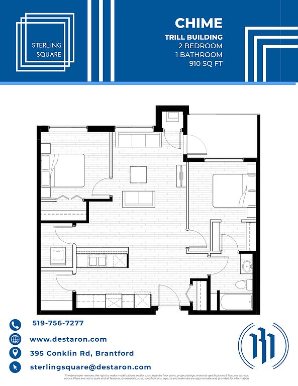 Experience the perfect harmony of comfort and convenience at Sterling Square, Brantford's premier rental community. Nestled in vibrant Tutela Heights, this mid-rise apartment offers a sophisticated lifestyle with modern amenities designed to meet diverse needs. Each spacious unit features individual thermostats, central air conditioning, in-suite laundry, and included internet, ensuring a seamless living experience. An ensuite bathroom adds an extra touch of privacy and comfort, while on-site staff provide dependable support.