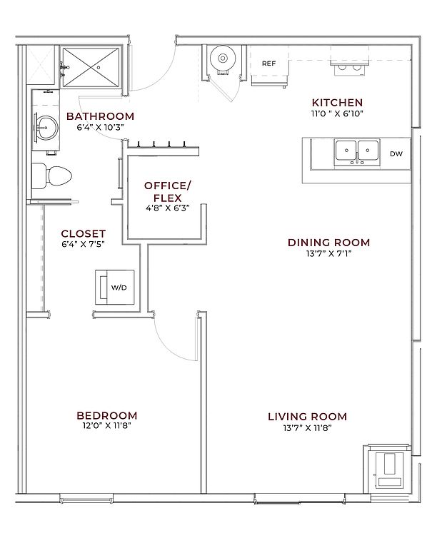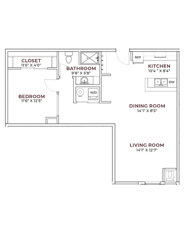 Choose from thoughtfully designed studio, one-, and two-bedroom apartments featuring modern finishes, stainless steel appliances, hard-surface countertops, and expansive windows that create bright, inviting spaces.