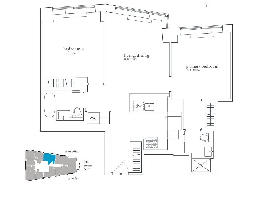 A groundbreaking green building with a striking glass and metal facade, 80 Dekalb rises 36 stories in the heart of Fort Greene, at the intersection of downtown and brownstone Brooklyn. Behind its stunning exterior, you'll find spacious studio, one, and two-bedroom residences offering spectacular city and river views. The modern, airy units feature 9 to 11-foot-high ceilings, designer kitchens, oversized closets, luxurious baths, and washers and dryers in every home.