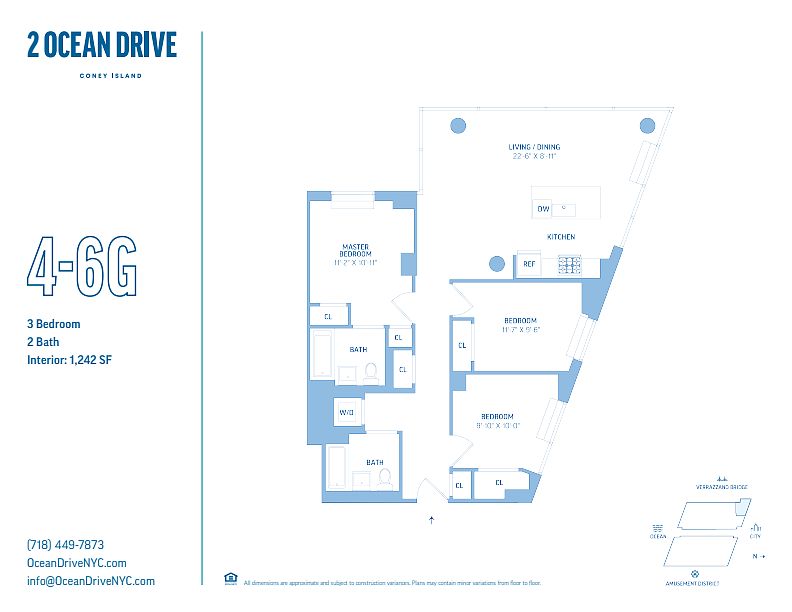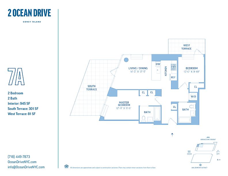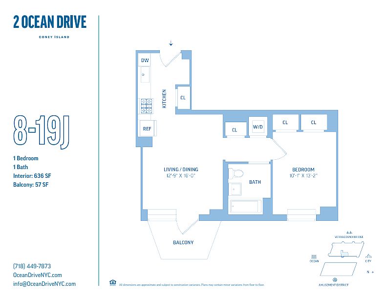 Chic and stylish residences come with elegant finishes and a choice of exclusive terraces and balconies for you to enjoy the unparalleled vistas of Coney Island's historic amusement park, the unmistakable Manhattan skyline, the beauty of the Verrazzano-Narrows Bridge, and the unmatched views of the Atlantic Ocean. Relax and unwind on the 25,000 square foot landscaped oceanfront sundeck, take a dip in the indoor swimming pool, or challenge yourself in the state-of-the-art gym. Feel like you've stepped into an everyday vacation and live the dream at Ocean Drive.