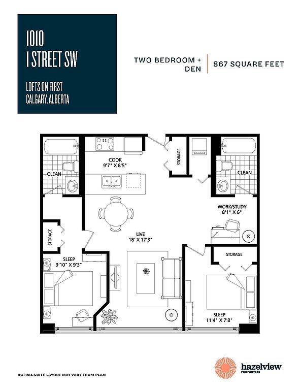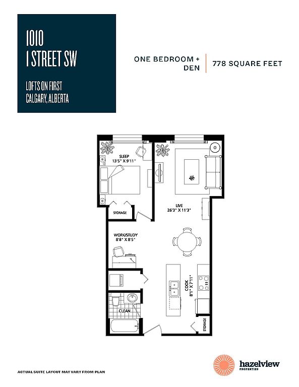 Lofts of First (1010 First Street SW) welcomes you with an elegant lobby featuring a hip and comfy hang-out area. Its club-style amenities include a modern fitness centre, multimedia party room, billiards room and free wireless internet lounge. Your brand new luxury loft-style suite features exposed concrete ceilings, a gourmet kitchen with quartz countertops, stainless steel appliances (including dishwasher and microwave) and in-suite laundry.