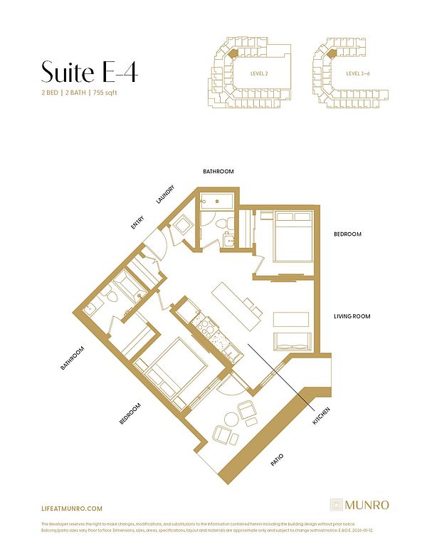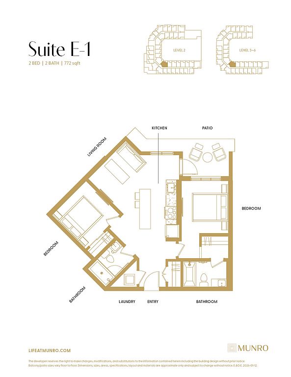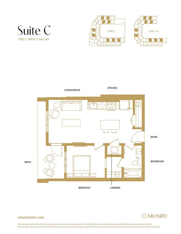 Choose from a range of refined floor plans, including one- and two-bedroom layouts, each featuring spacious living areas and private balconies or patios.