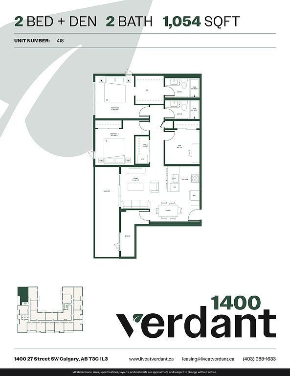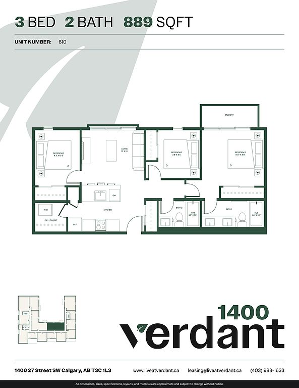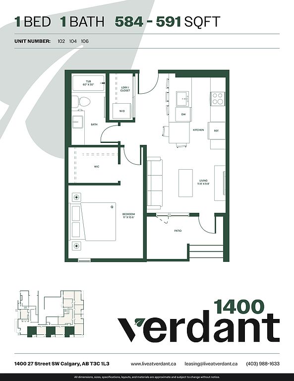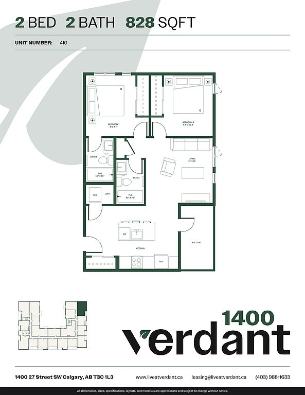 Welcome to Verdant at Bow Trail! Located in Shaganappi at 1400 27th Street SW, Calgary. Our pet-friendly building offers the best amenities including a social lounge, fitness centre, rooftop terrace with BBQ, underground parking with EV chargers, bicycle storage, car wash and pet spa! The apartments include high-end finishes, A/C, in-suite laundry and more! All with easy access to public transit just steps away from the Shaganappi c-train station, a quick commute to downtown, and shopping nearby that includes Westbrook Mall and 17th Ave SW.