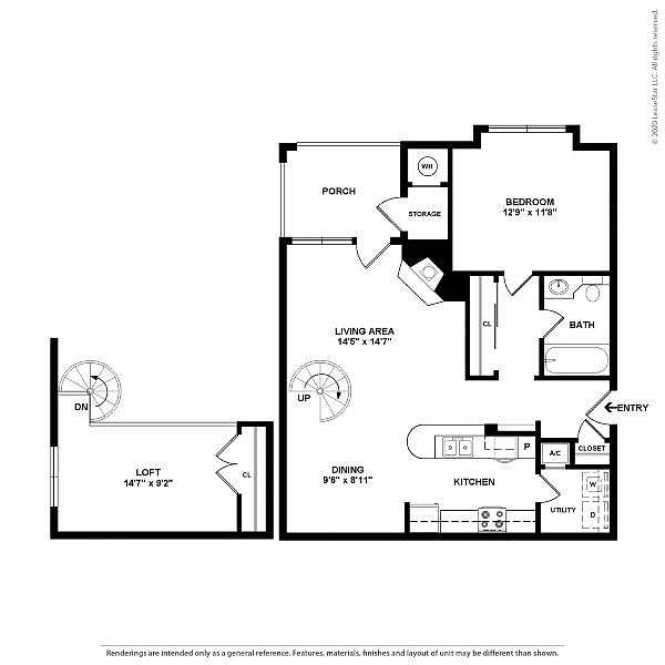 Studio 1 ba568 sqft