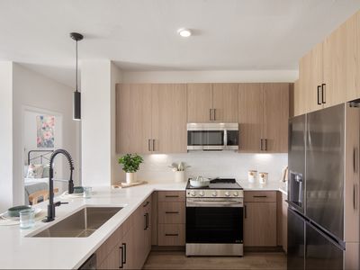 Quartz countertopsHigh-end stainless steel appliancesSpacious floor plansResort-style poolLush green spacesDesigner fixtures throughoutGourmet kitchens