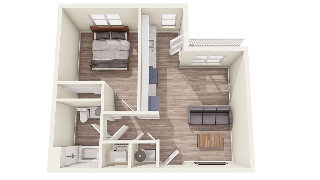 In-unit washer and dryerQuartz countertopsModern lightingNine-foot ceilingsStainless steel appliancesHardwood floors