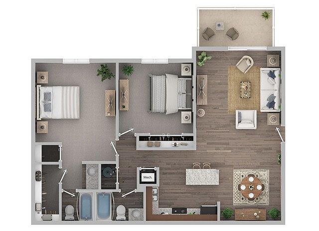 - Hardwood Floor: Hardwood-Style Flooring and Plush Carpeting