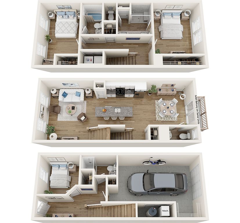 Private garagesSpacious three-bedroom townhomes