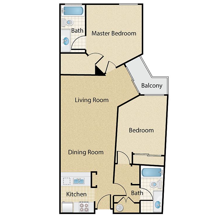 Our spacious two bedroom floor plans (960 SF and larger) offer premier amenities that are second to none. Meal preparation is a cinch in kitchens equipped with a pantry, dishwasher, and breakfast bar. Our residents are afforded all the comforts of home with carpeted floors, central air and heating, and large walk-in closets. Enjoy the extra pleasures of oak cabinetry, washer and dryer options, French doors and windows, and a personal balcony or patio with spectacular views available. Designed with you in mind, we offer features to make your life easier and more pleasurable.
