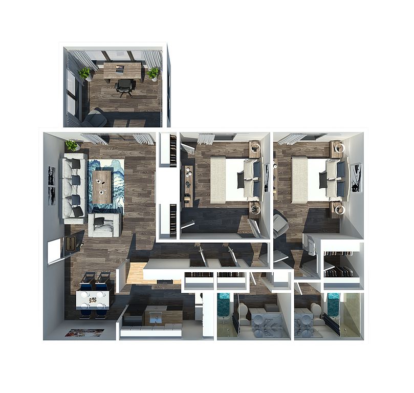 Choose from spacious one- and two-bedroom apartment homes with newly renovated interiors, sunrooms, wood-inspired flooring, granite counters, oversized closets, ceiling fans, and washer/dryer connections. Enjoy resort-style amenities including a saltwater pool, 24-hour fitness center, cyber cafe, fire pit lounge, grilling pavilion, putting green, and a leash-free bark park.