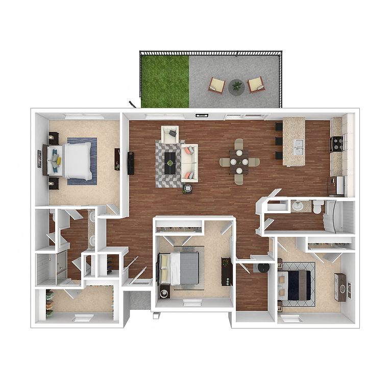 Spacious floor plansModern kitchenStainless steel appliancesGranite countertopsHardwood-style floors