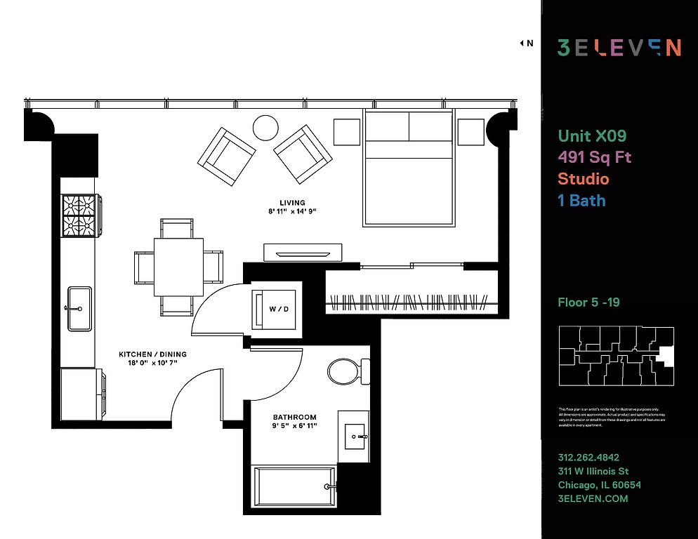 3Eleven is the ultimate destination for those seeking a vibrant lifestyle in the heart of River North. This stunning addition to the neighborhood offers thoughtfully designed open-concept living spaces that perfectly blend work and leisure.