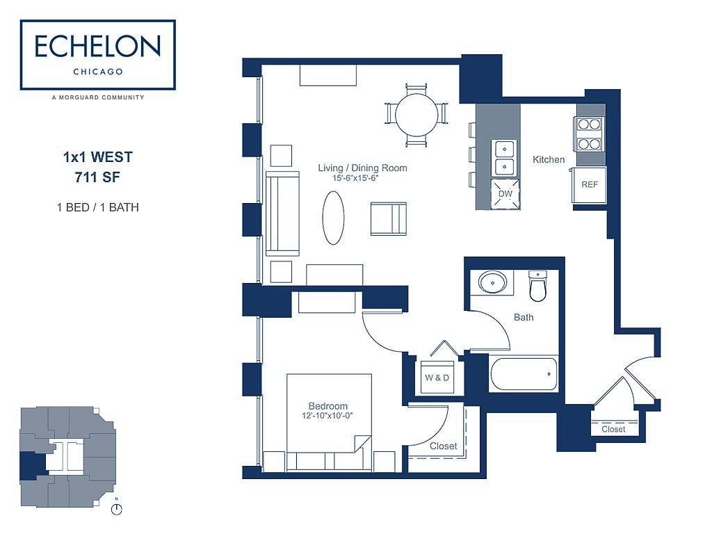 Located at the edge of West Loop and River North, Echelon's impeccably designed residences are complemented by impressive views of the city skyline, in-demand features, and upscale amenities. Entering the lobby, residents are welcomed home by a dedicated 24-hour concierge. Echelon's collection of amenities includes an outdoor pool, sundeck with grilling stations, fitness center, resident lounge, and business center. Beautifully appointed residences feature modern kitchens with stainless steel appliances and granite countertops, washer and dryer, spacious bathrooms, and an abundance of natural light. It's all waiting for you here, at Echelon Chicago. Contact us today for your personal tour!