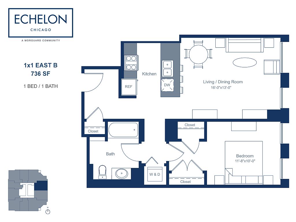 Yes, Echelon Chicago has in-unit laundry for some or all of the units.