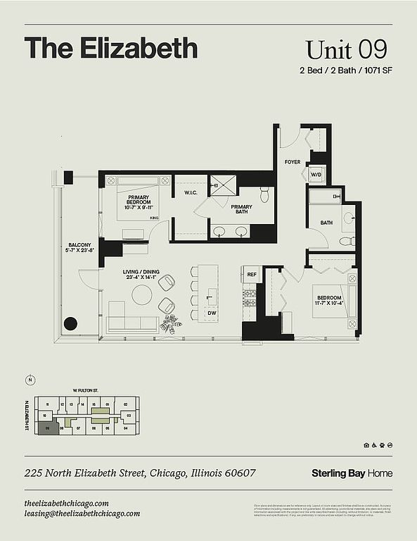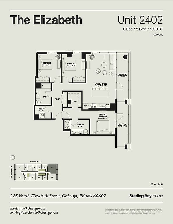 Nestled in the heart of Chicago's vibrant Fulton Market, The Elizabeth Apartments, designed by architect Hartshorne Plunkard, offer a pinnacle of urban sophistication. These spacious residences boast floor-to-ceiling windows, walk-in closets, and pristine waterfall-edge white quartz countertops. Enjoy lavish amenities including a pool with cabanas, collaborative coworking spaces, and a cutting-edge fitness center. Embrace a unique urban lifestyle with on-site pet suite facilities and green spaces. Positioned in the transformed Fulton Market, The Elizabeth stands as a luxurious address where startups, businesses, and culture converge seamlessly. Live, work, and play in this dynamic neighborhood, home to award-winning eateries and thriving businesses. Make The Elizabeth your home and experience unparalleled luxury in the heart of Chicago's thriving Fulton Market. *Lease terms, pricing, and availability are subject to change at any time. Ask our leasing team for more details.