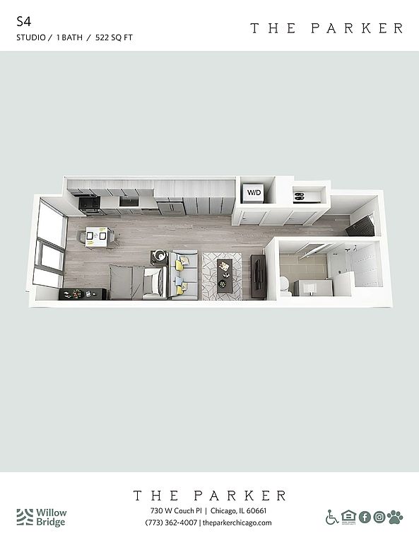 Welcome to The Parker Fulton Market apartments in Chicago. Experience an awe-inspiring lifestyle conveniently located near food, arts, culture & more. The amenities at our apartments for rent in the West Loop of Chicago are unparalleled. Discover countless comforts all designed to fill residents with ease, like our concierge, resident bicycle storage, delivery system, and more. Unwind at our sun terrace equipped with a pool, daybeds, grills, and fire pits or at the fitness center and yoga studio. Choose between one of our studio, one, two, or three-bedroom West Loop apartments for rent in Chicago, IL, and discover stylish & dazzling features. Our pet-friendly high-rise apartments in Chicago will give you spectacular views, upgraded appliances, large windows, and more. Contact us today to schedule your tour and begin the first step in making one of our West Loop apartments yours!