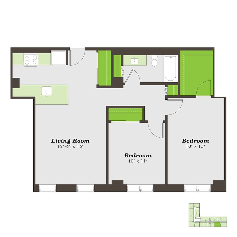Inside the historic Sutherland apartment, our residents enjoy sophisticated Bronzeville studio apartments, one-bedroom, and two-bedroom apartments. Luxury finishes include granite countertops, European-style cabinetry and stainless steel appliances. These Bronzeville apartments offer a 24-hour fitness center, lobby concierge, onsite laundry center, Wi-Fi lounge and parking. Our Sutherland apartments in Bronzeville are sure to have unit that meets your needs. Check out our variety of floorplans including 1 bedroom apartments for rent, 2 bedroom apartments for rent, and Bronzeville studio apartments for rent. We hope to welcome you to our ever-growing neighborhood soon!
