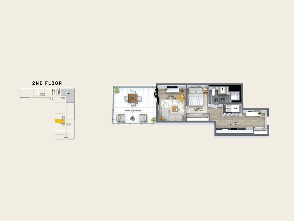Choose from a variety of thoughtfully designed floor plans from efficient studios to expansive two-bedroom townhomes all crafted to suit different lifestyles. Each residence features premium finishes, including stainless steel appliances, full-height tile in the bathrooms, matte black fixtures, and in-unit washer/dryer. Select units come with private balconies and roomy walk-in closets, offering both comfort and utility.