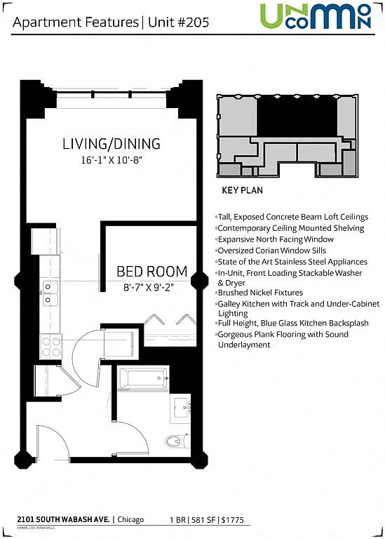 Discover Uncommon Apartments in the South Loop, a boutique apartment building offering 43 unique loft-style floor plans situated at the corner of 21st Street and Wabash Ave. Across the street from the Cermak-McCormick Green Line Train Station and Bus Stop, our prime location grants easy access to downtown and Museum Campus, while local amenities like restaurants, bars, banks, and shops are just steps away. Embrace urban living with our on-site fitness center, package room, and bike storage center. Inside, each unit boasts expansive windows, custom floating kitchen shelving, full-size in-unit laundry, and stainless steel appliances, ensuring modern comfort and convenience.