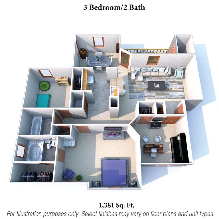 With spacious layouts up to 1,381 square feet and inviting leisure areas,