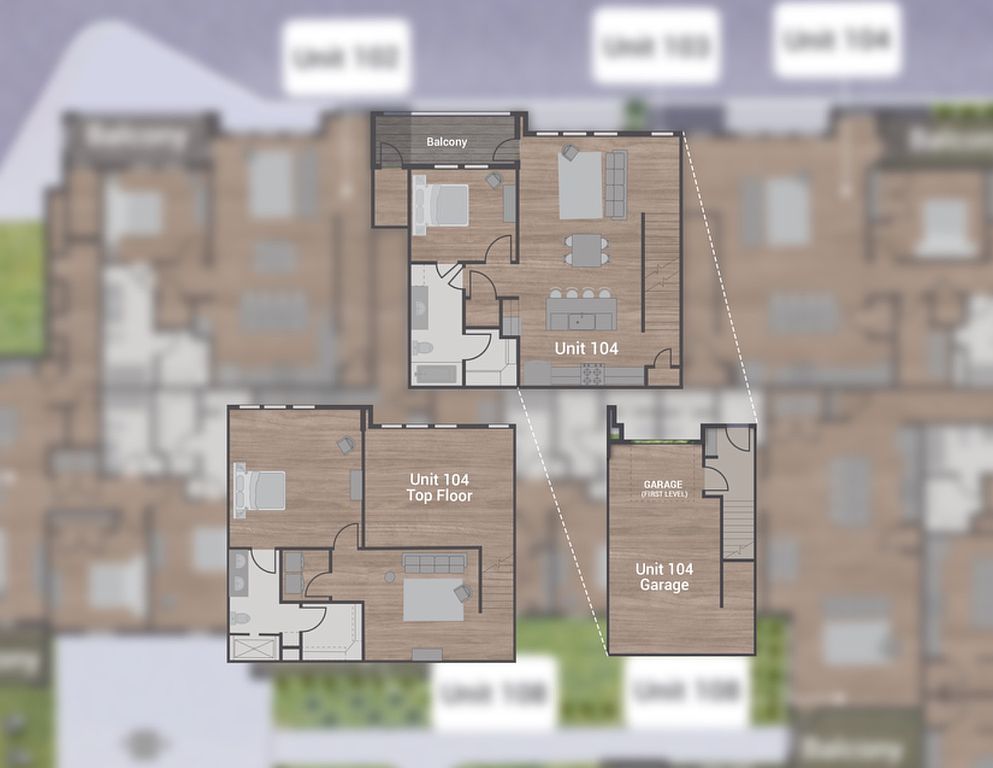 Tributary 50 features 27 distinct residences and a resident lounge that includes a space for entertaining, working, and a wellness room. The resident lounge opens to an outdoor entertainment area on the creek. The upscale layouts include private entrances to the outside, attached garage options and covered parking, mud rooms, ample closet and storage space, expansive Pella Impervia Series windows, vaulted ceilings, enclosed covered patios and balconies, dry bars and are sustainably built with LEED Certification.