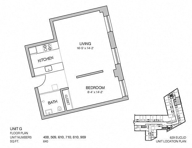 Lofts at 629 Euclid has a transit score of 80, it has excellent transit.