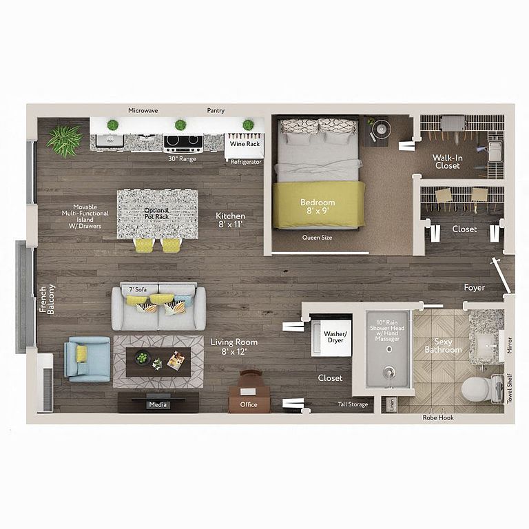 - V2: 1 Bedroom 1 Bathroom Convertible