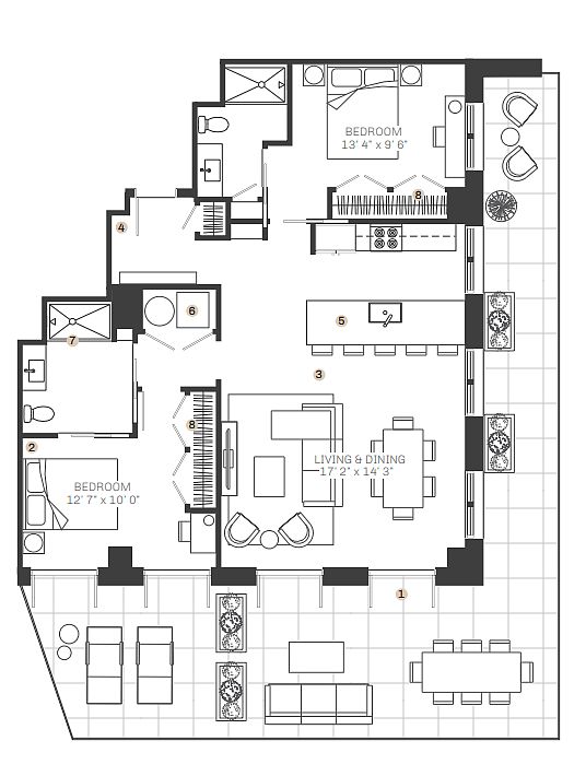 Luxury residential unitsSunset terraceRooftop pool